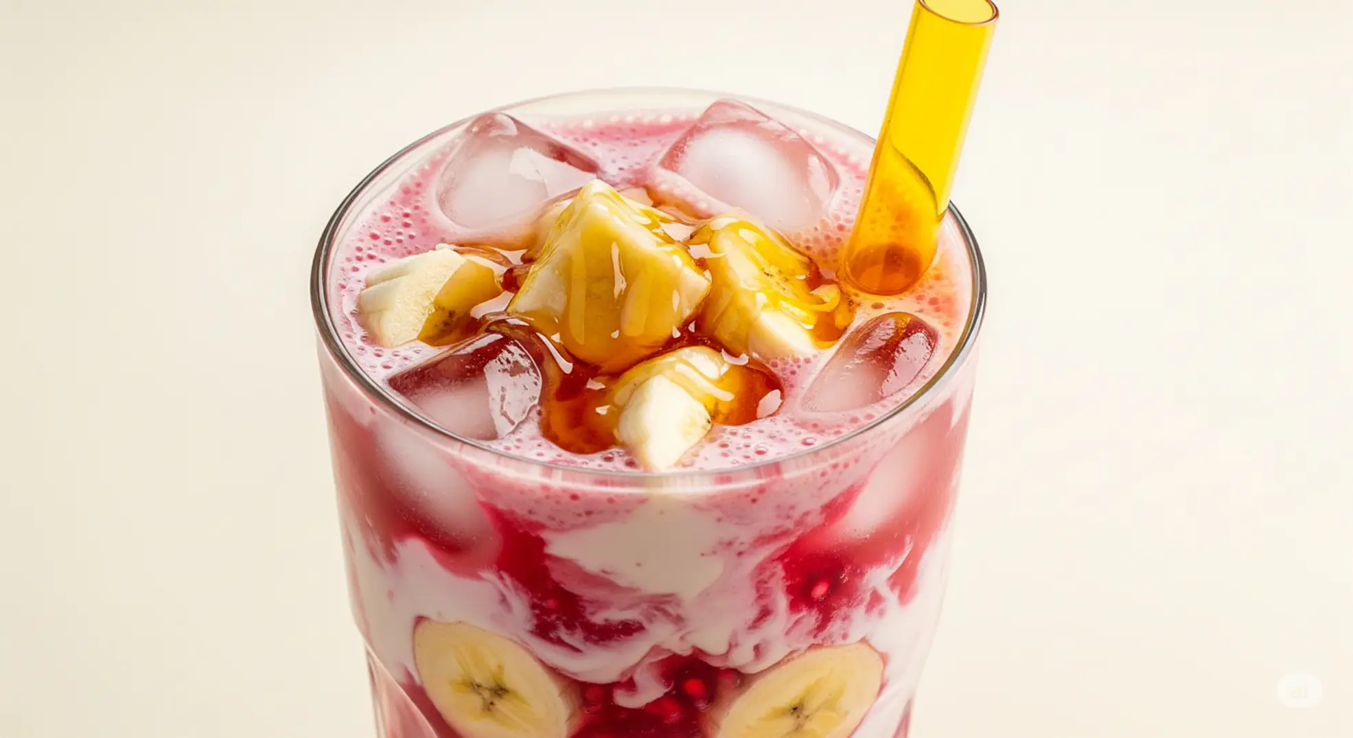 - Σε ένα μπλέντερ ρίχνετε όλα τα υλικά, χτυπάτε και σερβίρετε σε μεγάλο ποτήρι με χοντρό καλαμάκι και παγάκια.
